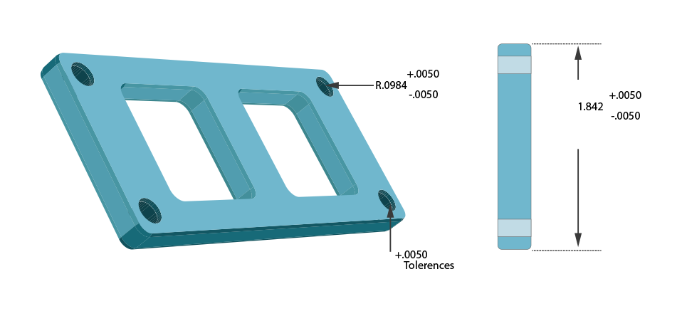 Se nenhuma tolerância específica for indicada no design do produto, RapidDirect mantém uma tolerância padrão de +/- -.005 \"para peças de metal e +/- .010 \" para peças de plástico. Tolerâncias mais estreitas são possíveis, embora possa ser mais demorado para atingir, pois as taxas de RPM devem ser diminuídas para contabilizar a maior precisão.
